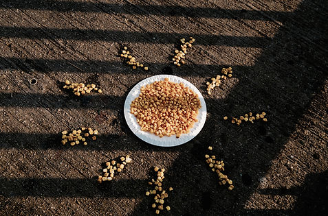 The fourth one will be using dried corn. This is similar to the flowers one since we are choosing things that are yellow. We thought yellow and orange would be the best two colours in order to represent the sun. We would put most of the dried corn on a plate. Afterwards, we would make a shape of sun and put them on the bridge which people will usually walk by.